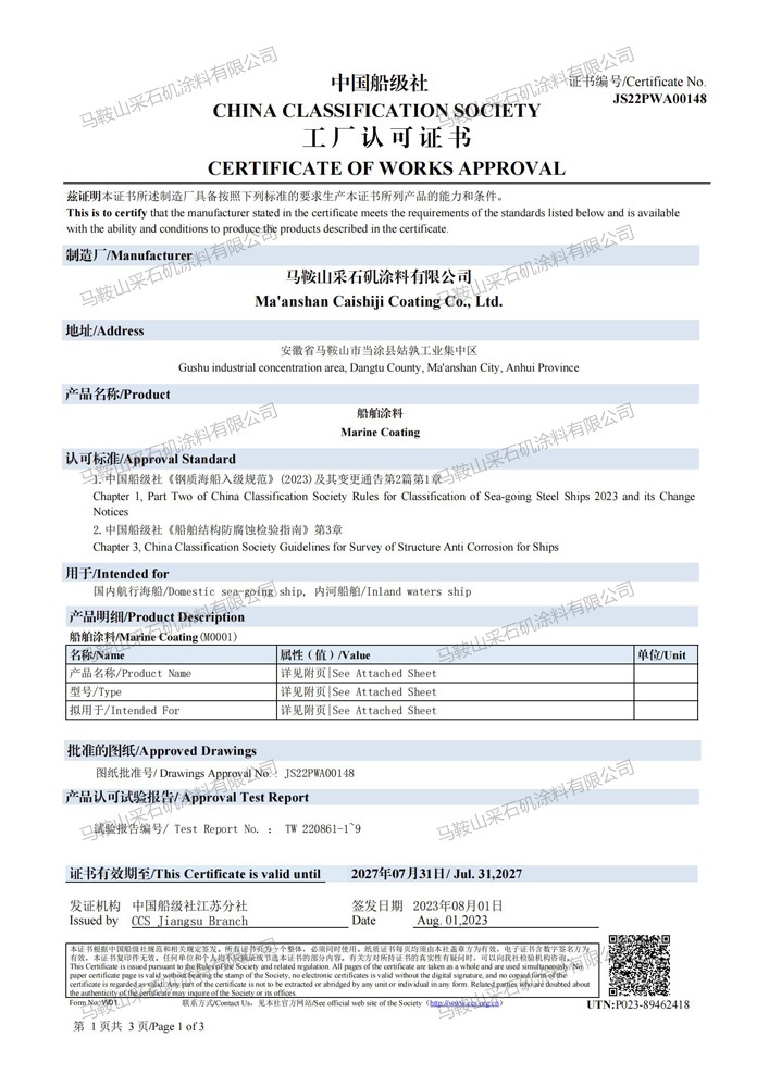 - 2024-09-23馬鞍山采石磯涂料有限公司 2023 年度溫室氣體排放核查報告